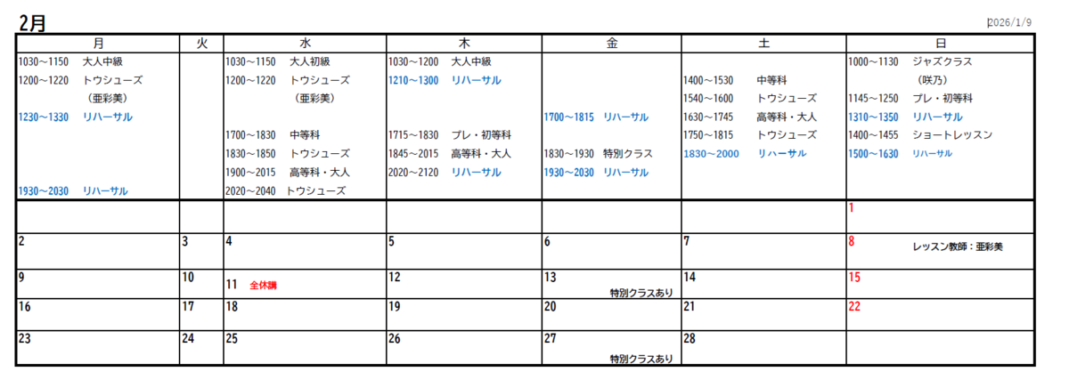 5月10日勉強会の練習に伴いレッスン時間が変更になっていますのでご注意ください。