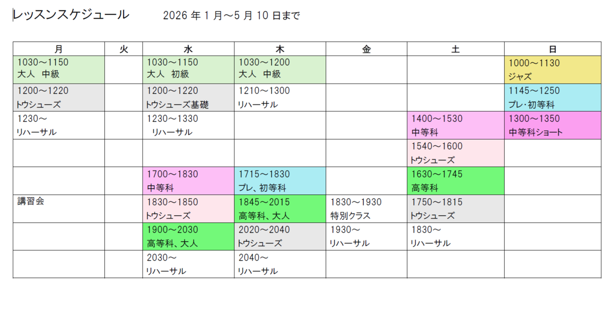 ※Eクラスは1月~4月までお休みになります。勉強会リハーサルが入ります。